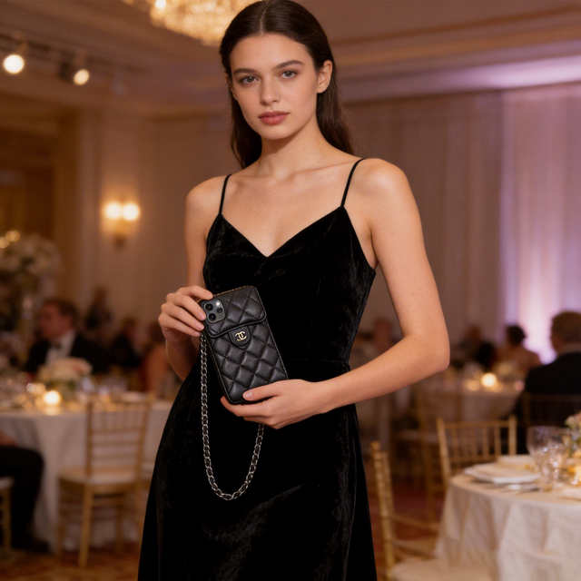 日本のフォーマルな場(結婚式、高級ディナーなど)では、女性は小さくて上品なバッグを好みます。こちらのスマホポーチは、まさに日本女性の間でパーティーの定番アイテム。クラシックなダイヤモンドキルティング、ブラックレザー、ゴールドのCCロゴが、極上のミニマルな高級感を醸し出します。ベルベットのドレスやテーラードジャケットにも完璧にマッチします。