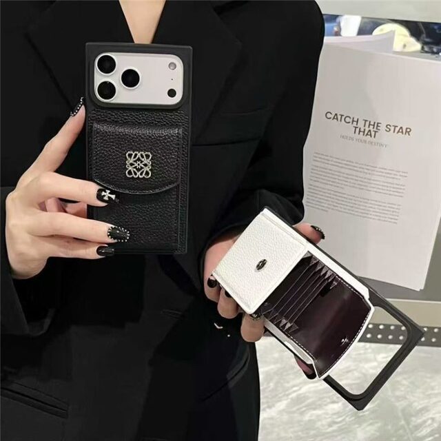 ロエベ アイホン ケース カード収納 iphone17pro/17promaxケース ブランド 人気 四角